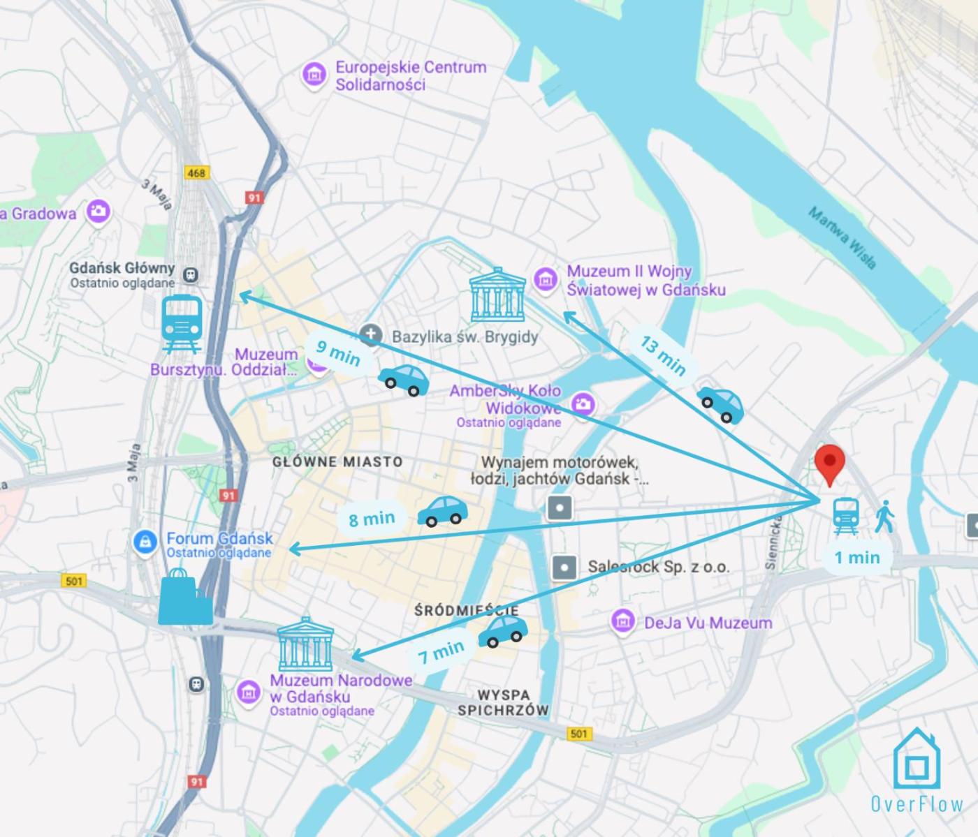 Obiekt Seredyńskiego p2 położony jest w centrum miejscowości Gdańsk i oferuje bezpłatne Wi-Fi. Odległość ważnych miejsc od obiektu: Centralne Muzeum Morskie – niecały kilometr, Polska Filharmonia Bałtycka – 800 m. Odległość ważnych miejsc od kwatery prywatnej: Długi Targ – niecały kilometr, Ratusz Głównego Miasta – 1,1 km.
