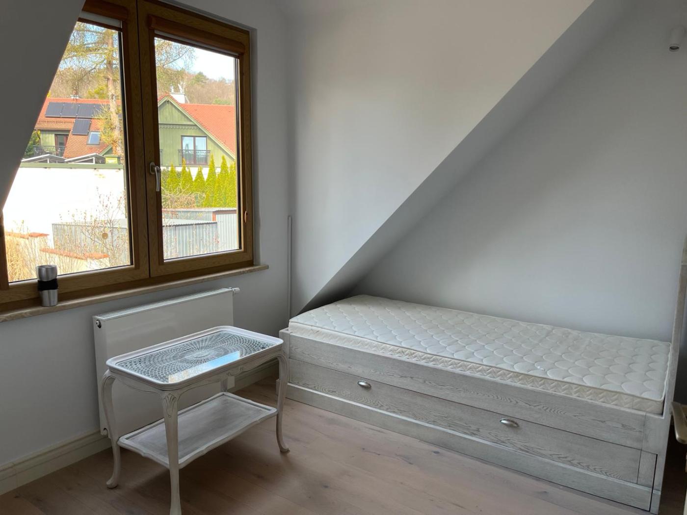 Willa z widokiem na ogród. The fireplace is a top feature of this villa. This villa includes 1 living room, 3 separate bedrooms and 2 bathrooms with a bath and a shower. A kitchen fitted with a refrigerator, a dishwasher and an oven is available for cooking and storing food. The villa is furnished with a desk and a seating area and offers a washing machine, a dining area and garden views. The unit has 4 beds. Willa - 8 osobowy. Powierzchnia pokoju ok.: 160 mkw.