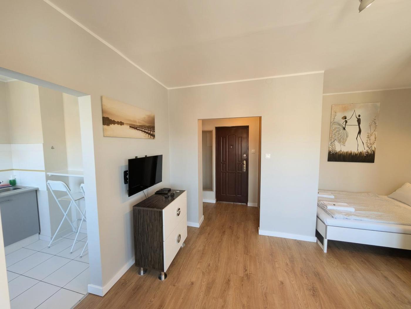 Apartament. This apartment features 1 living room, 1 separate bedroom and 1 bathroom with a walk-in shower and free toiletries. In the well-equipped kitchen, guests will find a stovetop, a refrigerator, kitchenware and a microwave. The apartment features a flat-screen TV with satellite channels, a washing machine, a tea and coffee maker, a seating area as well as city views. The unit has 2 beds. Powierzchnia pokoju ok.: 30 mkw.